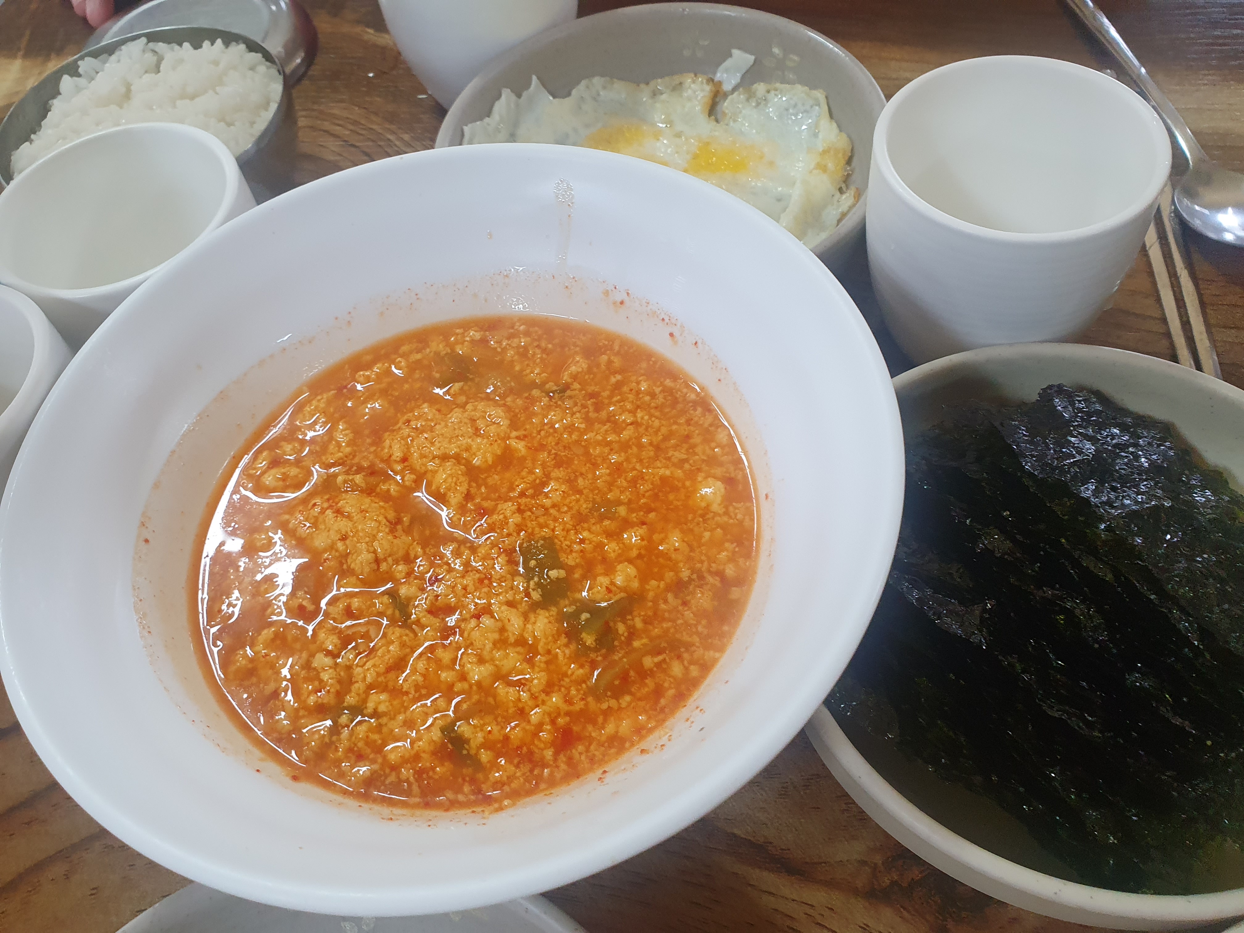 처음에는 뭔가 멀~건 된장국에, 부실한 느낌의 순두부에 좀 실망을 했는데