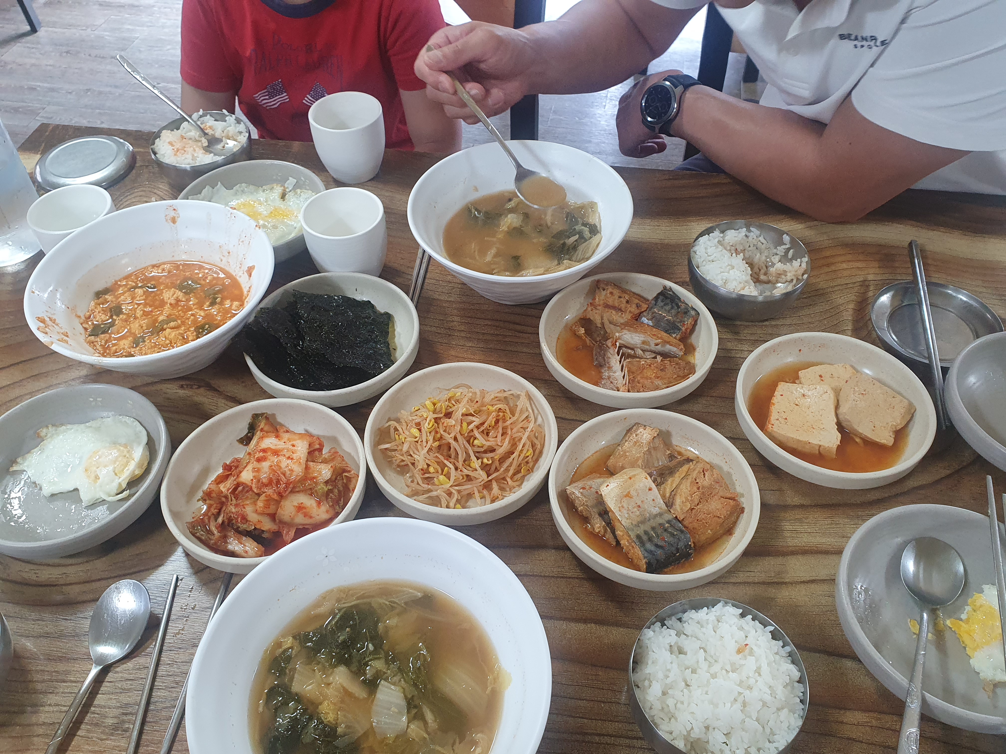 가기 전에, 갔다 와서 들러서 배추된장국 한 그릇 하고 나면 든든~~~ 하다고 한다.